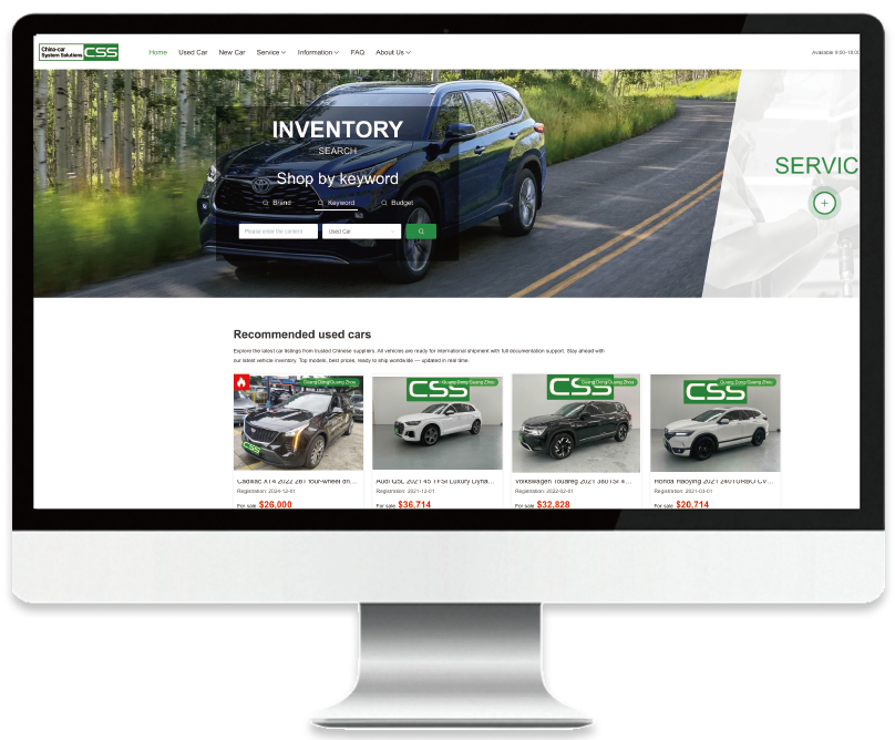 CSS平台是唯普汽车为链接全球市场与中国优质二手车资源而打造的全新跨境交易门户,该平台为国际买家及合作伙伴提供全方位支持,助力全球买家在线验车、跨境直购、物流清关无忧,打造高效透明的跨境交易体验。可以说,CSS真正实现了“指尖上的二手车出口”,大大提升了采购效率。